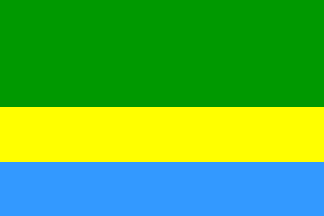 The flag of Cuellaje is horizontally divided green-yellow-celestial blue (2:1:1). The green stripe is a symbol of dedication to the natural environment,  to life and to biodiversity resources. It is also a symbol of youth, loyalty, hope, liberty, confidence and safety. The yellow stripe is a symbol of the people's ardour, optimism and kindness, as well as of the resources of the soil. The blue stripe is a symbol of pure air and of the crystalline water  of the rivers.