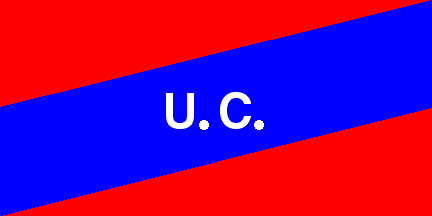the white letters "U.C." shall be placed diagonally on the red field, the height