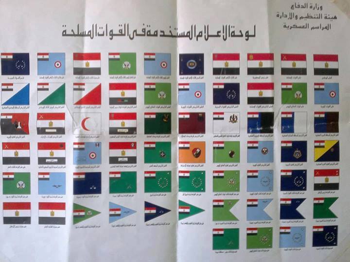 A plate of the flags used by the Egyptian armed forces. I was not able to identify all of them, because the text is so small. Here are the ones I was able to identify: