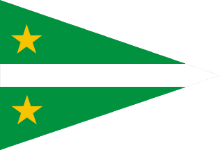 It is a plain green pennant with white capitals “ANC”.
