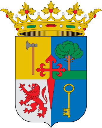 Meaning: The axe or scythe symbolizes the strong and "secure" location, used to defend against the Moors of Granada. The pine tree represents the abundant forests of the Sierra. The lion in the third quarter may have been taken from the arms of Archbishop Pedro Tenorio of Toledo, who may have granted some privilege to the town, although this is not confirmed. The key symbolizes an advanced, borderland area, a guard against the Muslim threat, while the Cross of Santiago represents the enclave's membership in this military order. The pine tree and the axe also appear on the coat of arms of Segura de la Sierra.
