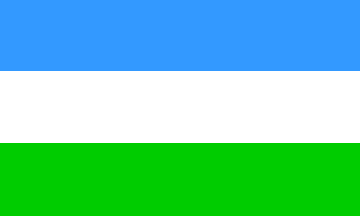 Flag: Rectangular flag, in proportsion 3:5, horizontally divided in three stripes of equal height, the upper, light blue, the middle, white, and the lower, light green.