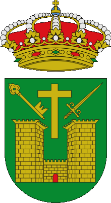 Meaning: The castle represents the one in the town, the cross the fact that it belonged to the Archbishop of Toledo, and the key and the sword because it was conquered on the day of Saint Peter and Saint Paul in 1310.