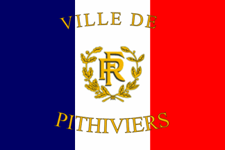 Besides, a local ceremonial Tricolore is flown on the city hall. It has the letters "RF" and the words "Ville de Pithiviers": photo (2023). Although often seen and sold by flagmakers, flags of this kind have no official legal basis.