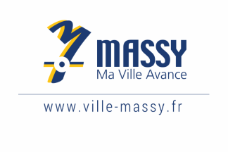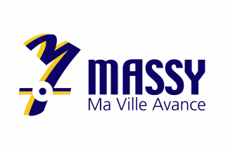 The flag of Massy, hoisted in front of the Town Hall (photo, 2015), is white with the municipal logo. The motto of the town reads "My town moves