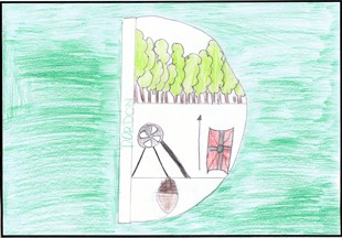 I was in year 6, the last year of primary school and 11 years old. I don't know the reason behind my design as I was young but remember learning the history of the surrounding area which contributed to the design.