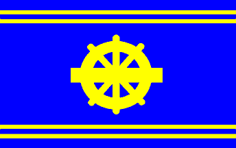 rectangular flag with a yellow paddle wheel motif in the centre. There are two