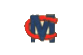 with a red ("C") and blue ("M") monogram in the center.