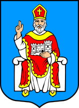 On a shield of blue background a depiction of St. Blasius sitting (image). St. Blasius has been the patron saint of the parish since 1628 and is shown on the coat of arms after the sculpture of the Prince's House, the seat of the former Captainship (military administration subdivision of the Republic of Ragusa) of Janjina, established in 1465. The flag is yellow, while the ceremonial gonfalon includes also branches of olive and grapevine. The flag and the coat of arms, as well as the small table flag, were made by the Heraldic Art company, from Rijeka, after the design was granted approval by the Croatian State Archive. The design of the coat of arms and flag costed the municipality 15,000 HRK (ca. 2,000 EUR).
