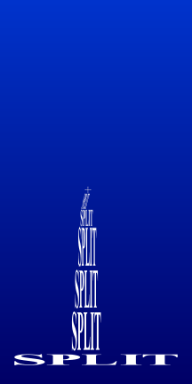 The flag of Split, as presented on the municipal website (with construction details), is blue, with a shade gradient from darker to lighter from bottom to top, with the white emblem of the town in the lower half, consisting of six words "SPLIT" forming the silhouette of Diocletian's palace and the St. Dujam Cathedral belfry topped with a cross.