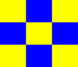 Chequered of 9, yellow and blue