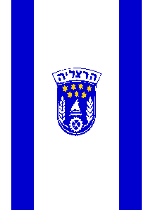 Keywords: herzliyya | iriyat herzliyya | coat of arms (stars: yellow) | coat of arms (stars: 7) | ship | cogwheel | text: hebrew (blue) |