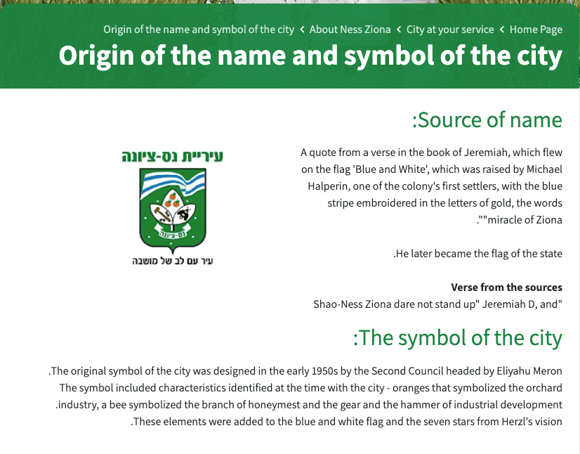 About the name and symbol of the city (nzc.org.il, Hebrew | English translation)