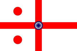 War ensign of India: St. George's cross with national flag in canton, ratio 1:2 (from Flagmakers Catalogue).