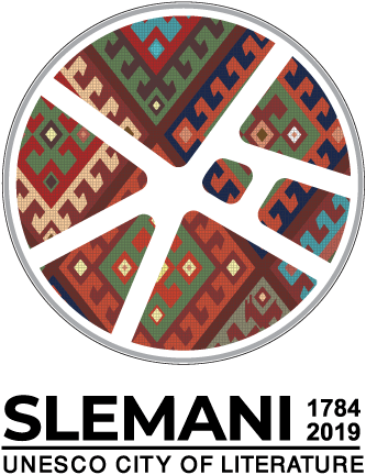 This logo appears to have been adopted sometime in 2020, considering it was recognized fairly late as such on 31 October 2019. Before that, no governorate logo appears to have existed besides a website logo; as such, it does appear there were no previous flags. The logo reads "SLEMANI 1784 2019" with a bar dividing the title of "UNESCO CITY OF LITERATURE" underneath. Above this text, a circular-format logo is found with an embroidered rug pattern for culture and a white road pattern on top of it. The logo is outlined in white, gray, white, then black. The year 1784 is of the city's foundation by the Ottomans and named after Suleiman Pasha (the father of its founder); 2019 is its 235th anniversary year and when it became a Creative City on 31 October 2019.