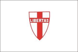 The once-mighty Italian Christian Democrats - An Italian tricolori with the crossed shield symbol of the DC, with the word LIBERTAS in white on the horizontal arm of the red cross above the white shield. I've found it those two versions at some DC books that I have at home