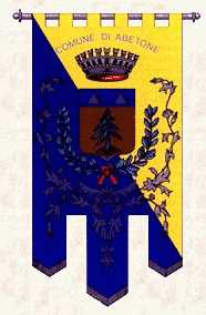 "GONFALONE - Drappo tagliato d'azzurro e di giallo, riccamente ornato di ricami d'argento e caricato dello stemma civico (Decreto del Presidente della Repubblica in data 6 ottobre 1953). Il grande abete che campeggia nello stemma si riferisce al nome del paese e rappresenta la natura boscosa del territorio. Le piramidi, al pari di quelle in pietra costruite in onore di Pietro Leopoldo I di Toscana e di Francesco III di Modena, ricordano la realizzazione della strada che univa la Toscana all'Emilia e avvicinava il porto di Livorno alla pianura padana."