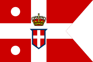 Distinguishing Flag: Swallowtail 2:3. Red field with Arms and Crown of Savoy