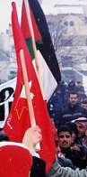 Yahoo News has a confusing scene of an anti-war demonstration in Jordan, with some flags. Is that a Che flag in the background? And what is the red flag in the foreground?