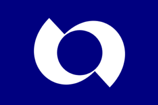 The city emblem was adopted on Sep 22nd 2005 by Notice No 217 but there is no flag law. The white flag has a blue and a green two color city emblem in the center. The city emblem is a stylized hiragana ば Ba of Bando. The green color stands for an abundant nature and farmed goods, the blue color for the stream of Tone River. The two circles represent an image of the city which is full of a vigor, a safety and a cooperation by co-work of Iwai and Sarujima.