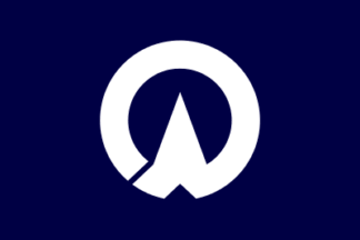 The flag of the former town of Akeno was blue with mark. The town is now, from 2005, part of the city of Chikusei.