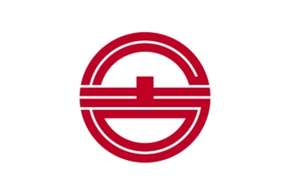 The flag of former town of Sekigane was blue with mark. The town is now, from