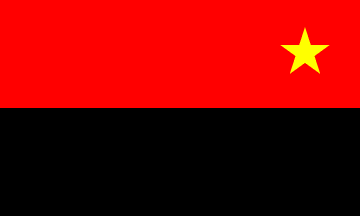 The Sea Tigers were the navy of the LTTE (Tamil Tigers), which has recently been officially defeated by the Sri Lankan military. Badge based on http://aruchuna.net/details.php?image_id=1211. Note that this flag has a sinister hoist (the writings are displayed correctly on the reverse side only), for unknown reason. Also note that this flag was intended to complement, rather than to replace, the red LTTE flag on Sea Tigers boats.