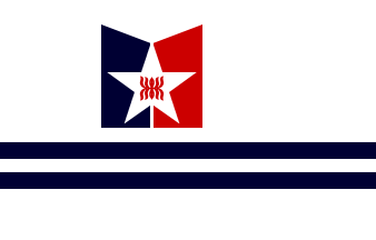 Stylized red "M" with large red star above four smaller four red stars in an arc open to the top on the center of the central panel of a red, white and red horizontal "Spanish" triband of red, white and red.