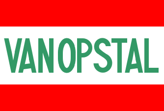 On Van Opstal, a Dutch inland shipping and transportation company at Tilburg (North Brabant province), I have found virtually nothing... but the house flag for which I have – again - to thank Marktplaats (Dutch auction site).  It was offered as no. 173161494 (accessed 3 Jun 2008) by “Ghis” from Westdorpe, Zeeland.  According to seller, made of nylon and measuring 95 [cm] x 140 [cm].