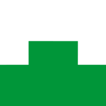 Blazon: Delt av sølv og grønt ved tindesnitt med en enkelt tinde. In English: Per fess argent and vert embattled with one battlement.