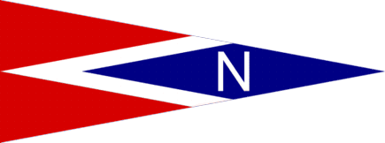 is a red pennant cut by a white chevron leaving a blue lozenge in the fly, with