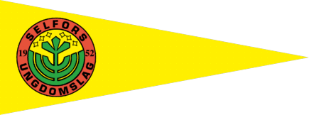 The flag of Selfors UL (Selfors Ungdomslag) from Selfors in Rana Municipality is a yellow pennant with the badge toward the hoist.