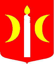 The arms: gules a burning candle argent between two crescents or. (świeca - candle) (arms after wikipedia).