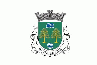 Shield Vert, two pine trees Or in fess, in base a heraldic fountain, in chief an open book Azure bound Argent charged with a bendy pen Argent. Mural crown Argent with three visible towers (village rank) and white scroll with inscription in black capitals "MOITA - ANADIA".