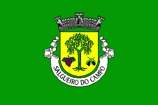 Shield Or a weeping willow Vert eradicated between a grape bunch Purpure leafed Vert at dexter and an olive branch Vert fruited Sable at sinister. Mural crown Argent with three visible towers (village rank) and white scroll with black inscription "SALGUEIRO DO CAMPO".