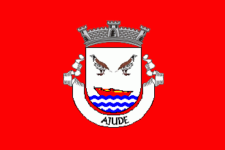 Shield Argent with base wavy of Azure and Argent, issuant from base a ferry Gules lined Or, in chief two partridges averted Proper. Mural crown Argent with three visible towers (village rank) and white scroll with inscription in black capitals "AJUDE".