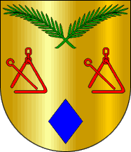 Shield Or two music triangles Gules and in chief two palm fronds Vert with their stem tips crossed saltirewise, in base a lozenge Azure. Mural crown Argent with three visible towers (village rank) and white scroll reading in black upper case serifed letters "S. FÉLIX"