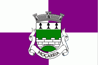 Shield Vert, a chief Argent charged with three ermines Sable, in base a Roman bridge Argent masoned Sable issuant from abase wavy of Azure and Argent . Mural crown Argent with three visible towers (village rank) and white scroll reading in black initials: "MOÇARRIA".