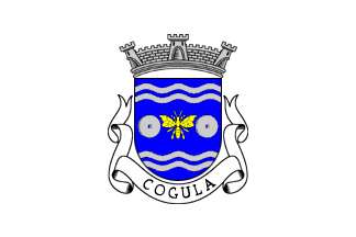 Mural crown Argent with three visible towers (village rank) and white scroll reading in black upper case serifed letters "COGULA".