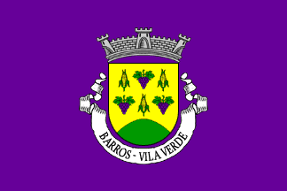 Mural crown Argent with three visible towers (village rank) and white scroll reading in black upper case serifed letters "BARROS - VILA VERDE".