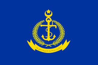 A white-field flag with blue logo of the Qatar Emiri Navy (commander's