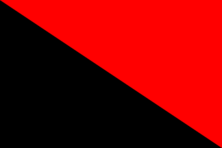 First used by anarchists during the Spanish Civil War: The red flag of socialism (Confederación Nacional del Trabajo) and the black flag of anarchism (Federación Anarquista Ibérica). The red and black colours are also often used by the syndicalism movement [trade unionism].