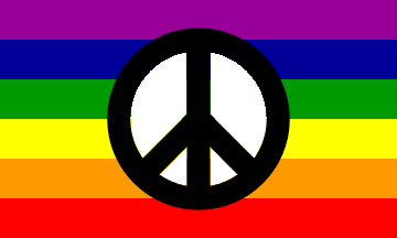 Based on the description by Željko (xf-film.html#rainbow) and existing Rainbow Peace flags, I've made the above speculative image of the flag reported to him near the end of the documentary feature Rainbow Warror.