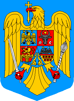 Romania's coat of arms has as a central element the golden eagle with cross. Traditionally, this eagle appears in the arms of the Arges county, the town of Pitesti and the town of Curtea de Arges. It stands for the "nest of the Basarabs," the nucleus around which Wallachia, was organised, the province that determined the historical fate of the whole Romania. The eagle, being the symbol of Latinity and a heraldic bird of the first order, symbolises courage, determination, the soaring toward great heights, power, grandeur. It is to be found also in Transylvania's coat of arms. The shield on which it is placed is azure, symbolising the sky. The eagle holds in its talons the insignia of sovereignty: a sceptre and a sabre, the latter reminding of Moldavia's ruler, Stephen the Great (1456-1504), also called "Christ's athlete" whereas the sceptre reminds of Michael the Brave (1593-1601), the first unifier of the Romanian Countries. On the bird's chest there is a quartered escutcheon with the symbols of the historical Romanian provinces (Wallachia, Moldavia, Transylvania, Banat and Crisana) as well as two dolphins reminding of the country's Black Sea Coast. In the first quarter there is again Wallachia's coat of arms on azure: an eagle or holding in its beak a golden Orthodox cross, accompanied by a golden sun on the right and a golden new moon on the left. In the second quarter there is Moldavia's traditional coat of arms, gules: an auroch head sable with a mullet of or between its horns, a cinquefoil rose on the dexter and a waning crescent on the sinister, both argent. The third quarter features the traditional coat of arms of Banat and Oltenia, gules: over waves, a golden bridge with two arched openings (symbolising Roman emperor Trajan's bridge over the Danube), wherefrom comes a golden lion holding a broadsword in its right forepaw. The fourth quarter shows the coat of arms of Transylvania with Maramures and Crisana: a shield parted by a narrow fesse, gules; in the chief, on azure, there is an eagle sable with golden beak coming out of the fesse, accompanied by a golden sun on the dexter and a crescent argent on the sinister; on the base, on or, there are seven crenellated towers, placed four and three. Also represented are the lands adjacent to the Black Sea, on azure: two dolphins affronts, head down.