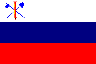 Ensign for ships of War-land Department (Flag dlya sudov voenno-suhoputnogo vedomstva), if a captain of a ship is not a navy officer. National tricolour with crossed gun, axe and spade.