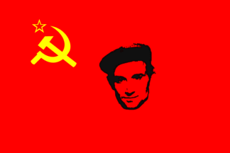 A version of this flag (photo no longer available) is slightly shorter and shows the image of Kaypakkaya in black and dark red.