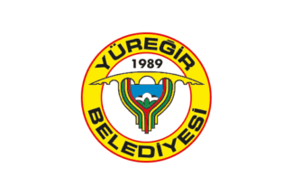 The flag of Yüreğir is celestial blue (photo) or white (photo) with the municipality's emblem. "Belediyesi" means "Municipality".