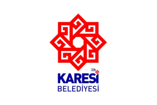 The flag of Karesi (photo, photo)) is white with the municipality's emblem in the middle. "Belediyesi" means "Municipality".