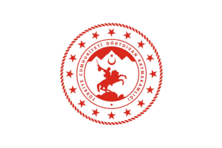 The flag of Dörtdivan (photo) is white with the municipality's emblem in the middle. "Belediyesi" means "Municipality".