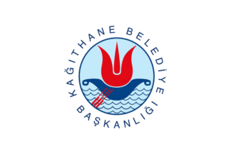The flag of Kağıthane (photo, photo), also used vertically (photo) is white with the municipality's emblem. "Belediye Başkanlığı" means "Municipality Presidency".